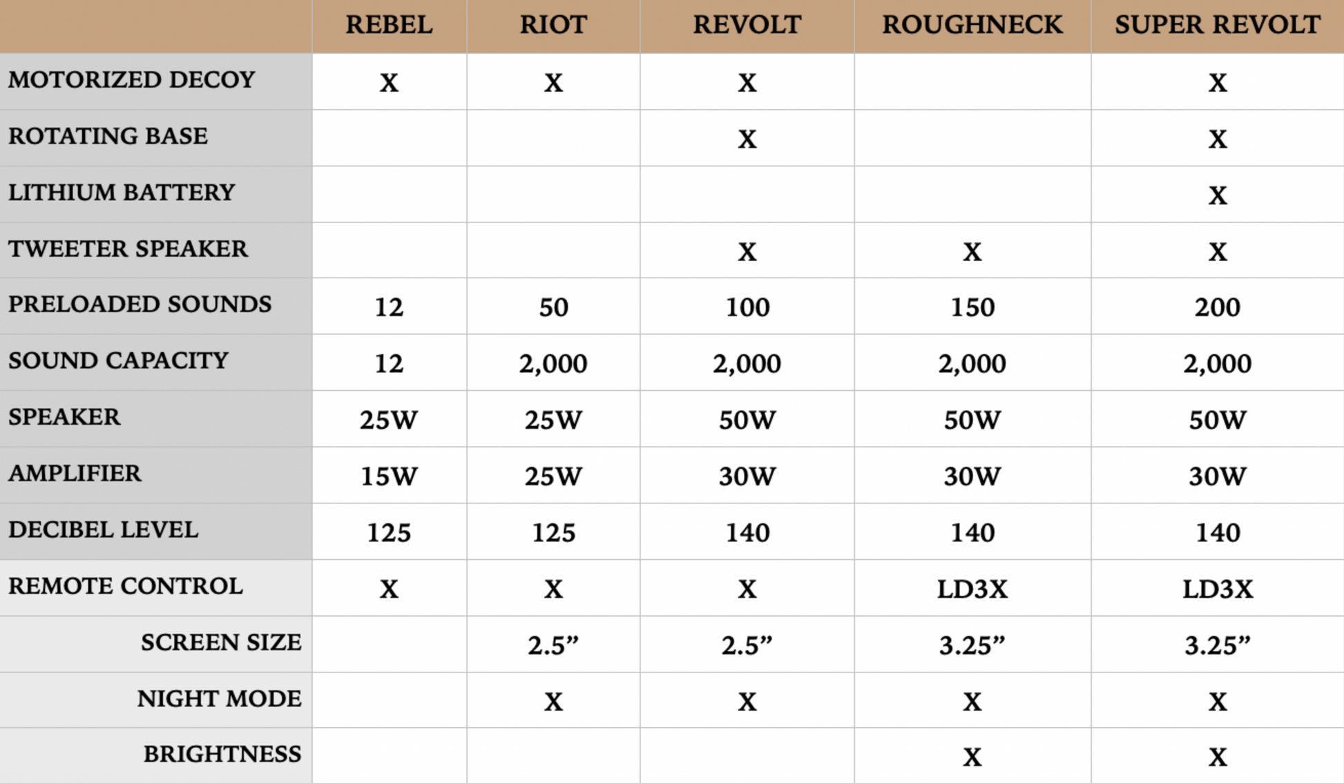 The Rebel features 12 predator enticing sounds recorded by The Verminator, Rick Paillet. Included is a motorized decoy to keep the focus off the hunter. The long range remote control does not require line of sight, and reaches 300+ feet. Remote and decoy store conveniently in the caller for easy travel. The Rebel runs on 10 AA batteries and the remote runs on (1) 12V 23A battery (not included).